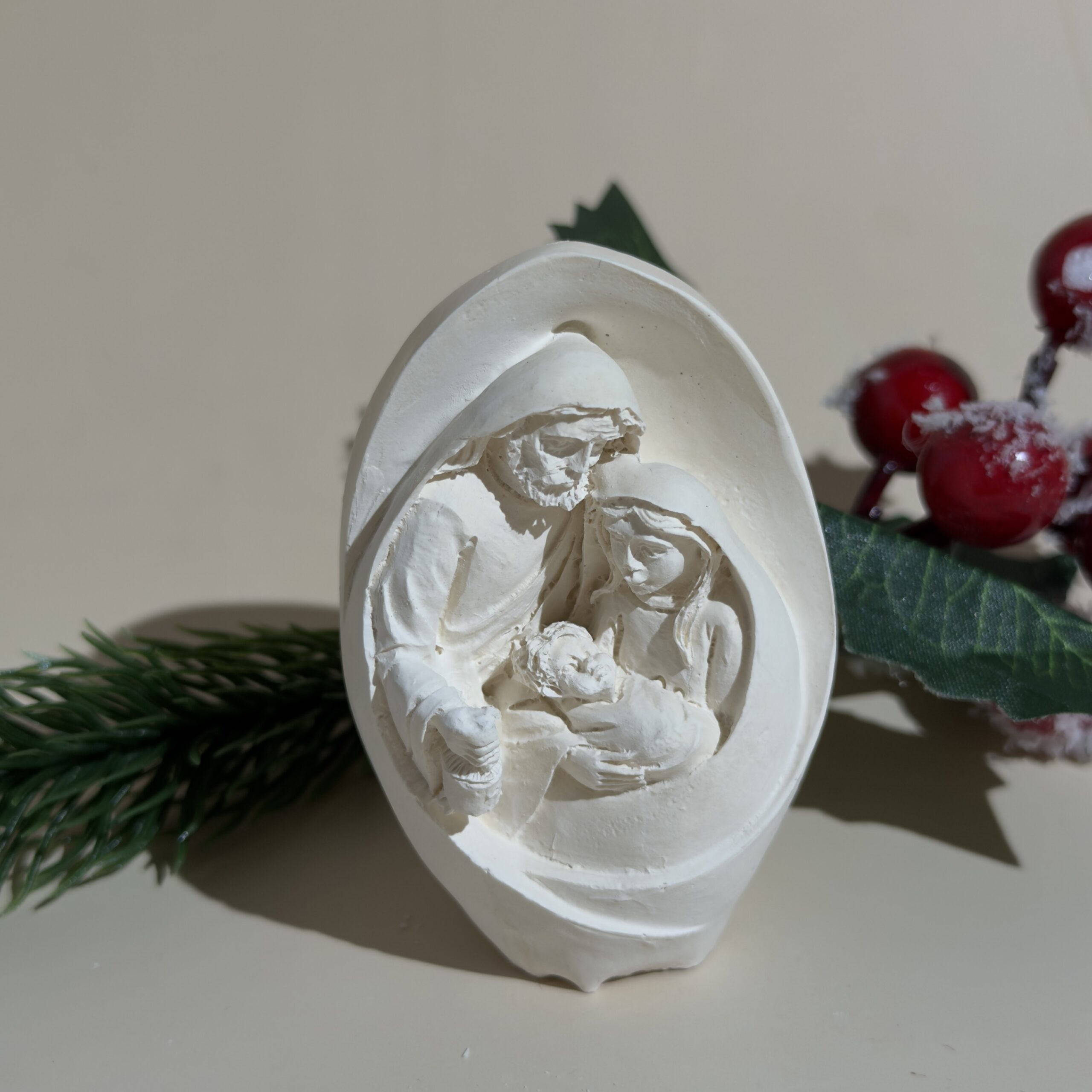 Com 6,6 cm de altura e 4,5 cm de largura, a estátua artesanal da Sagrada Família Elythía em gesso é ideal para nichos de oração, aparadores, mesas de cabeceira e pequenos altares. Seu formato compacto permite uma integração discreta e significativa em qualquer ambiente que valorize a fé, a paz e o amor familiar.